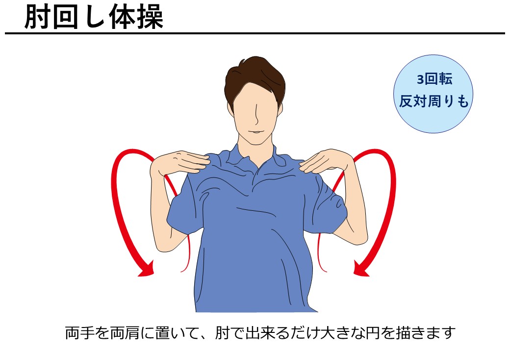 - 肩甲骨ほぐし:肩を後ろに回す(10回)