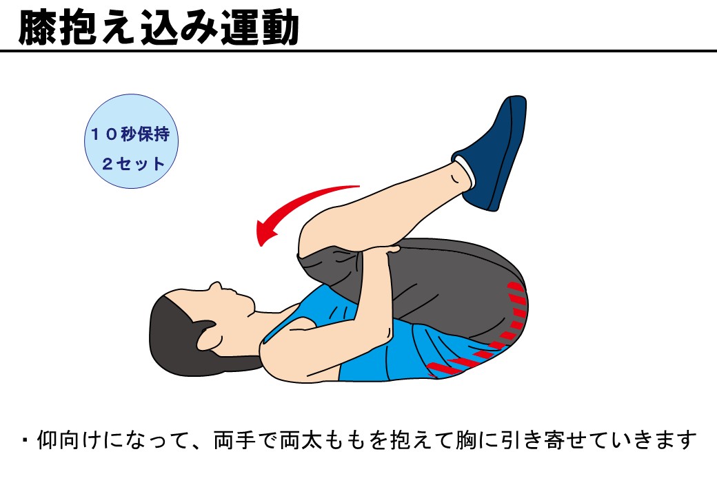 - 膝抱え込み運動:仰向けになり、両ひざを胸に引き寄せて10秒キープ。骨盤内の血流UP。