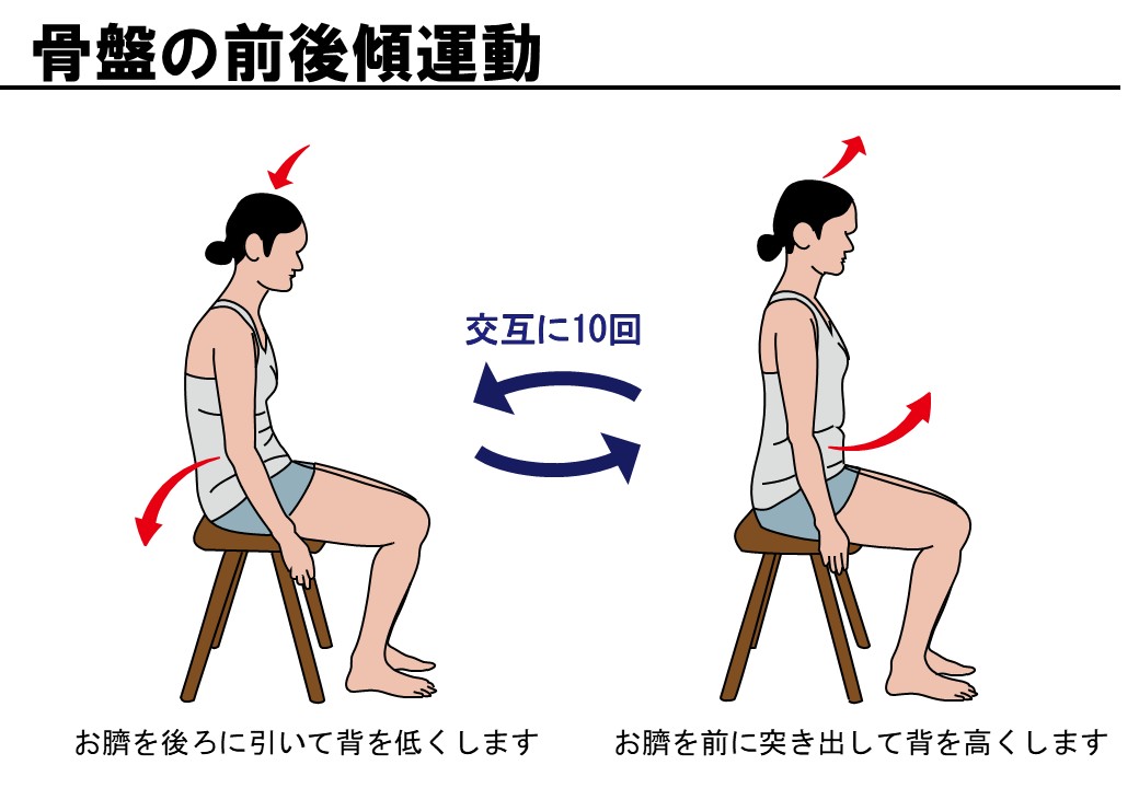 - 骨盤の前後傾運動:骨盤の運動性改善、脊柱の運動性改善