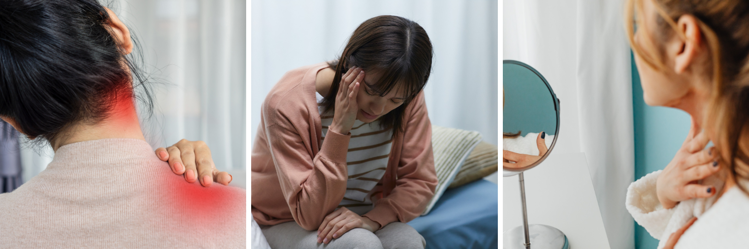 - 肩こり・痛みの位置・肩の盛り上がりを確認