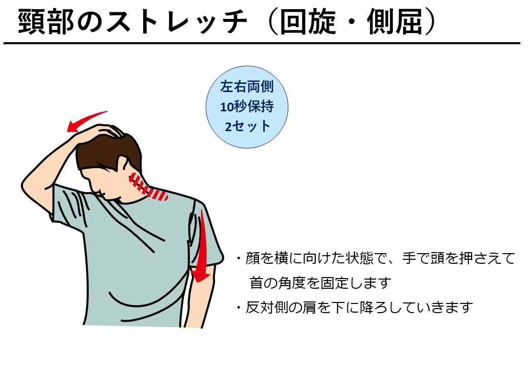 - 首ゆらし:首を左右にゆっくり倒す(各5回)