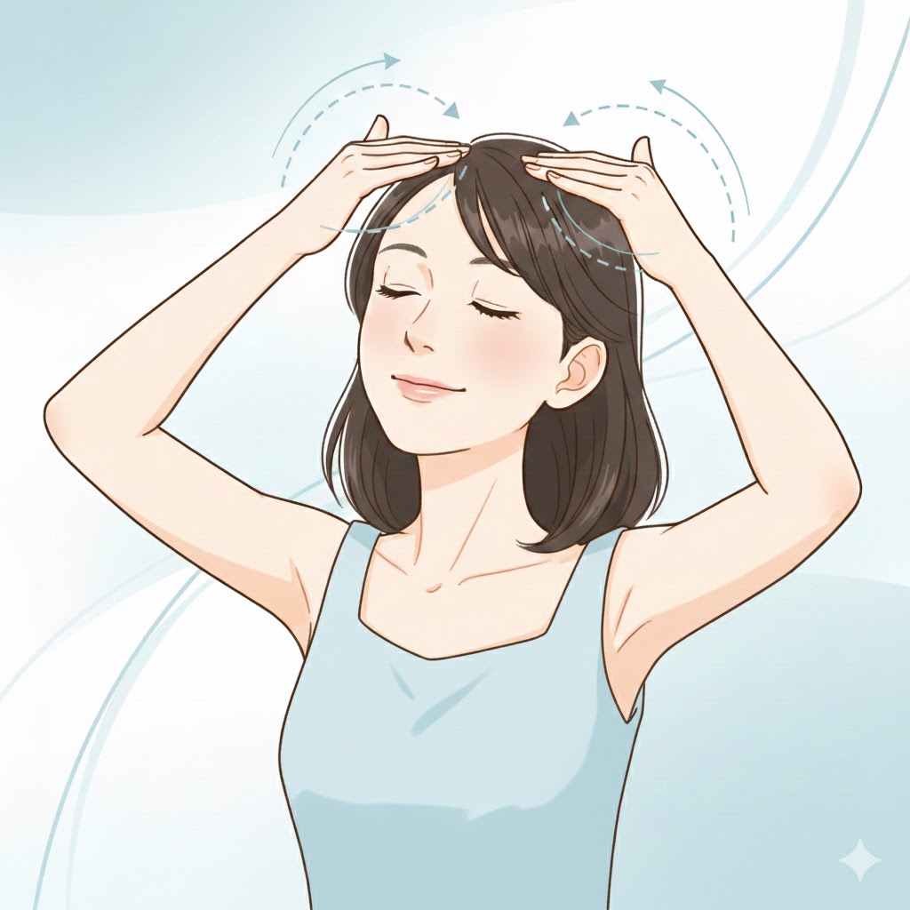 - 頭皮マッサージ:指の腹でやさしく円を描く