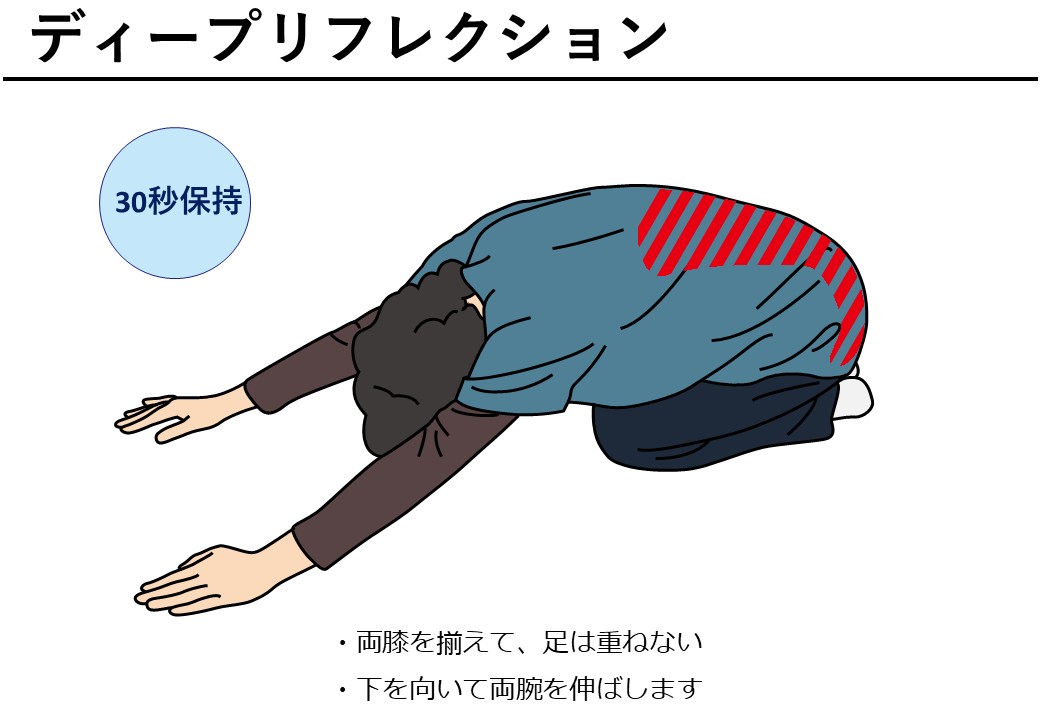 - 背伸び呼吸:両手を上げて深呼吸×5回